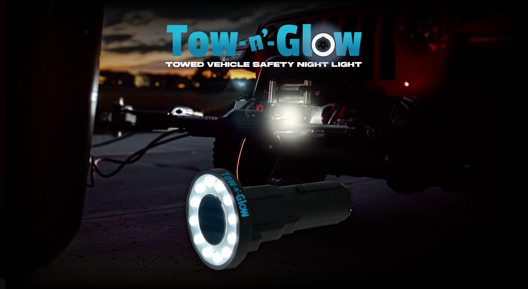 Meet Tow-n'-Glow, the Towed Vehicle Safety Night Light. Early in the morning or late at night, Tow-n'-Glow's LEDs light up the Tow Zone for easy hookup or disconnection and safe driving at night. Simply attach Tow-n'-Glow to your 6-pin umbilical cable, plug it into the towed vehicle's 6-pin receiver, and presto! You instantly have daytime visibility at night.